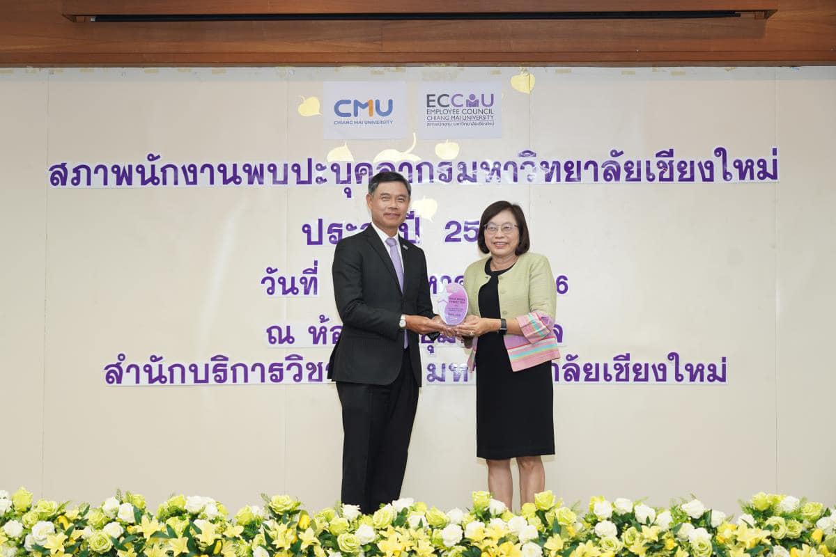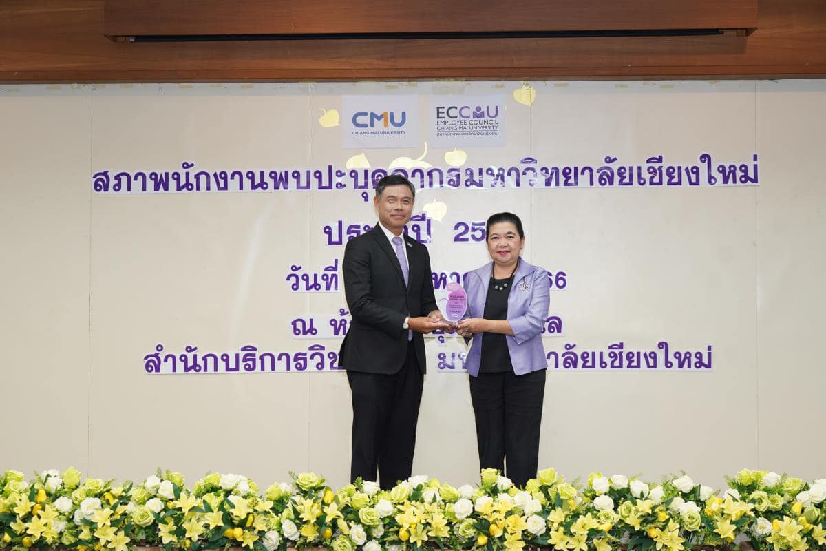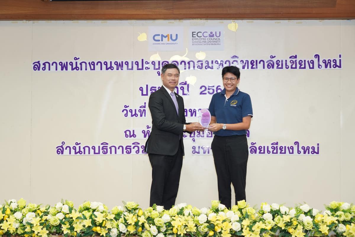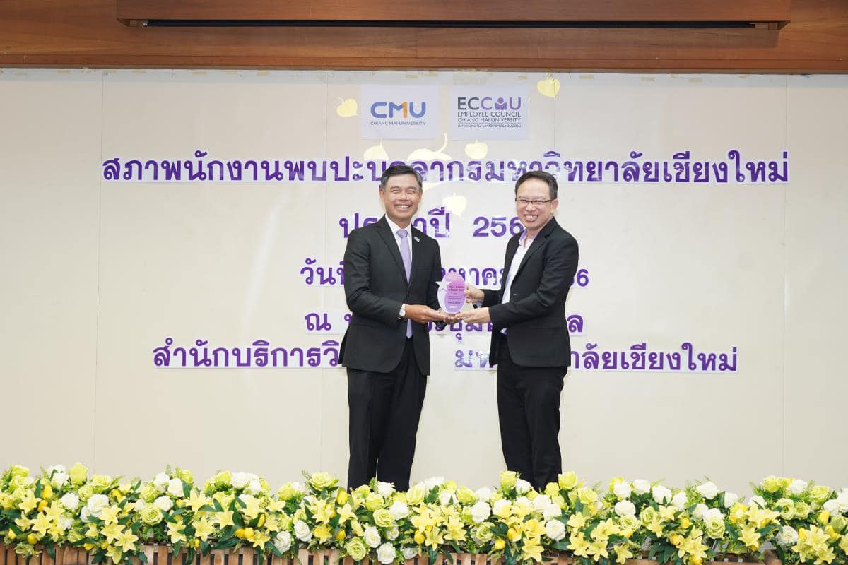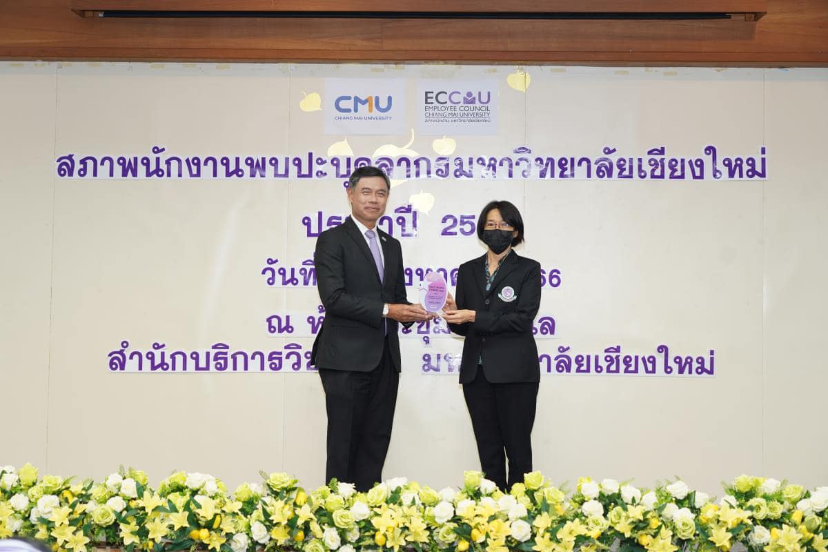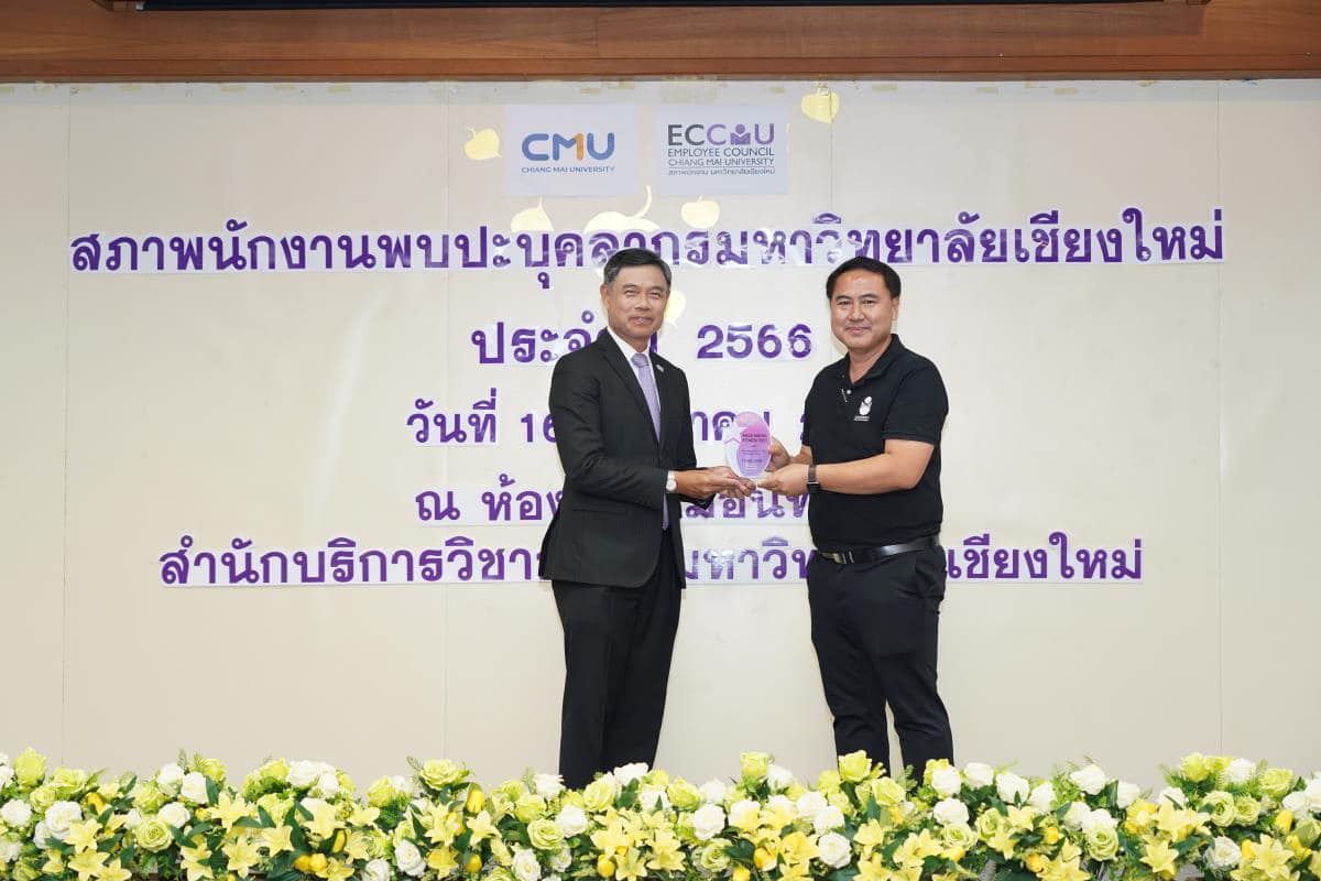 ศาสตราจารย์ ดร.นพ.พงษ์รักษ์ ศรีบัณฑิตมงคล อธิการบดีมหาวิทยาลัยเชียงใหม่ เป็นประธานมอบโล่รางวัลส่งเสริมสุขภาพ Role Model fitness test ประจำปี พ.ศ.2566 แด่ส่วนงานที่มีบุคลากรสุขภาพดีในโครงการทดสอบสมรรถภาพทางกายของบุคลากรมหาวิทยาลัยเชรยงใหม่ประจำปี 2566 ณ ห้องประชุมอินทนิล ชั้น 1 สำนักบริการวิชาการมหาวิทยาลัยเชียงใหม่ เมื่อวันพุธที่ 16 สิงหาคม พ.ศ.2566