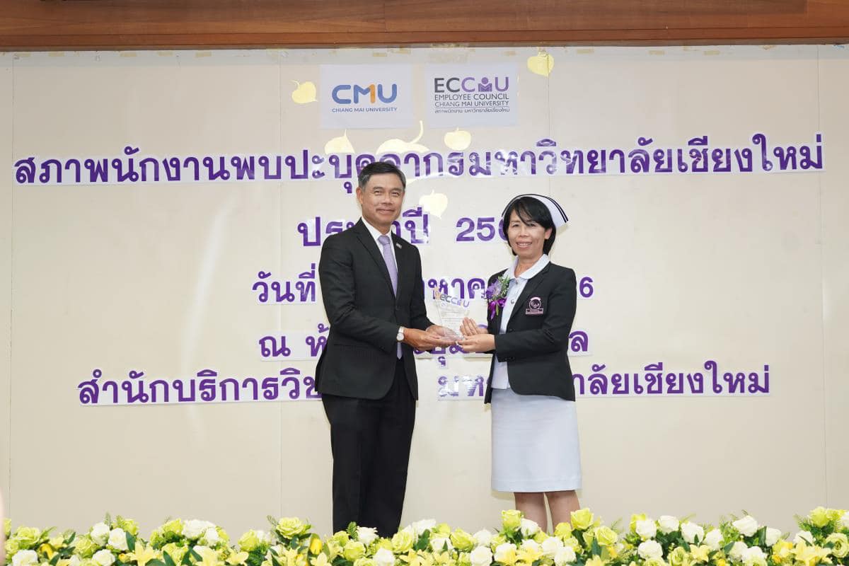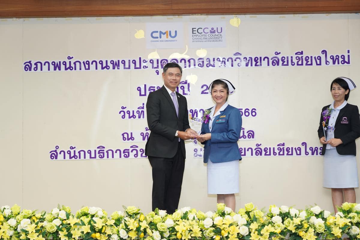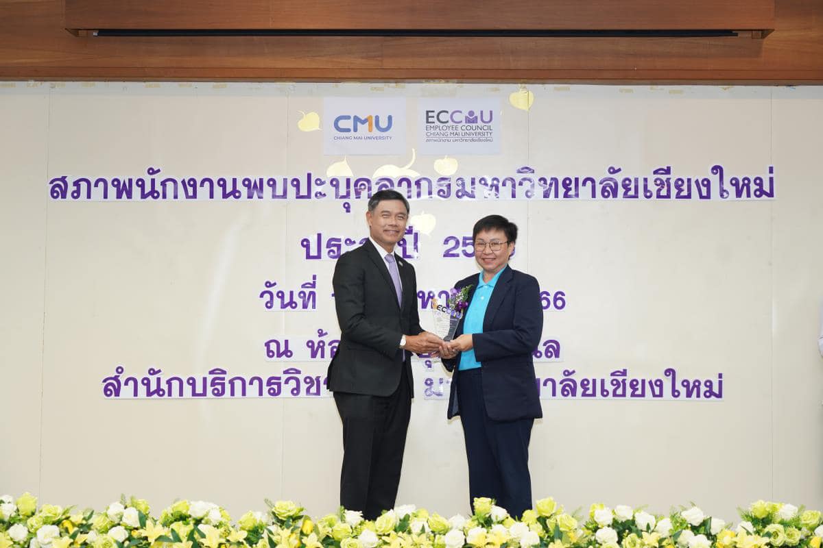 ศาสตราจารย์ ดร.นพ.พงษ์รักษ์ ศรีบัณฑิตมงคล อธิการบดีมหาวิทยาลัยเชียงใหม่ เป็นประธานในพิธีมอบรางวัลอาจารย์ดีเด่นและบุคลากรสายสนับสนุนผู้มีผลงานดีเด่นประจำปี เพื่อเป็นการเชิดชูเกียรติและเป็นขวัญและกำลังแด่บุคลากรมหาวิทยาลัยเชียงใหม่ ในกิจกรรม "สภาพนักงานพบปะบุคลากรมหาวิทยาลัยเชียงใหม่ ประจำปี 2566" ณ ห้องประชุมอินทนิล ชั้น 1 สำนักบริการวิชาการมหาวิทยาลัยเชียงใหม่ เมื่อวันพุธที่ 16 สิงหาคม พ.ศ.2566