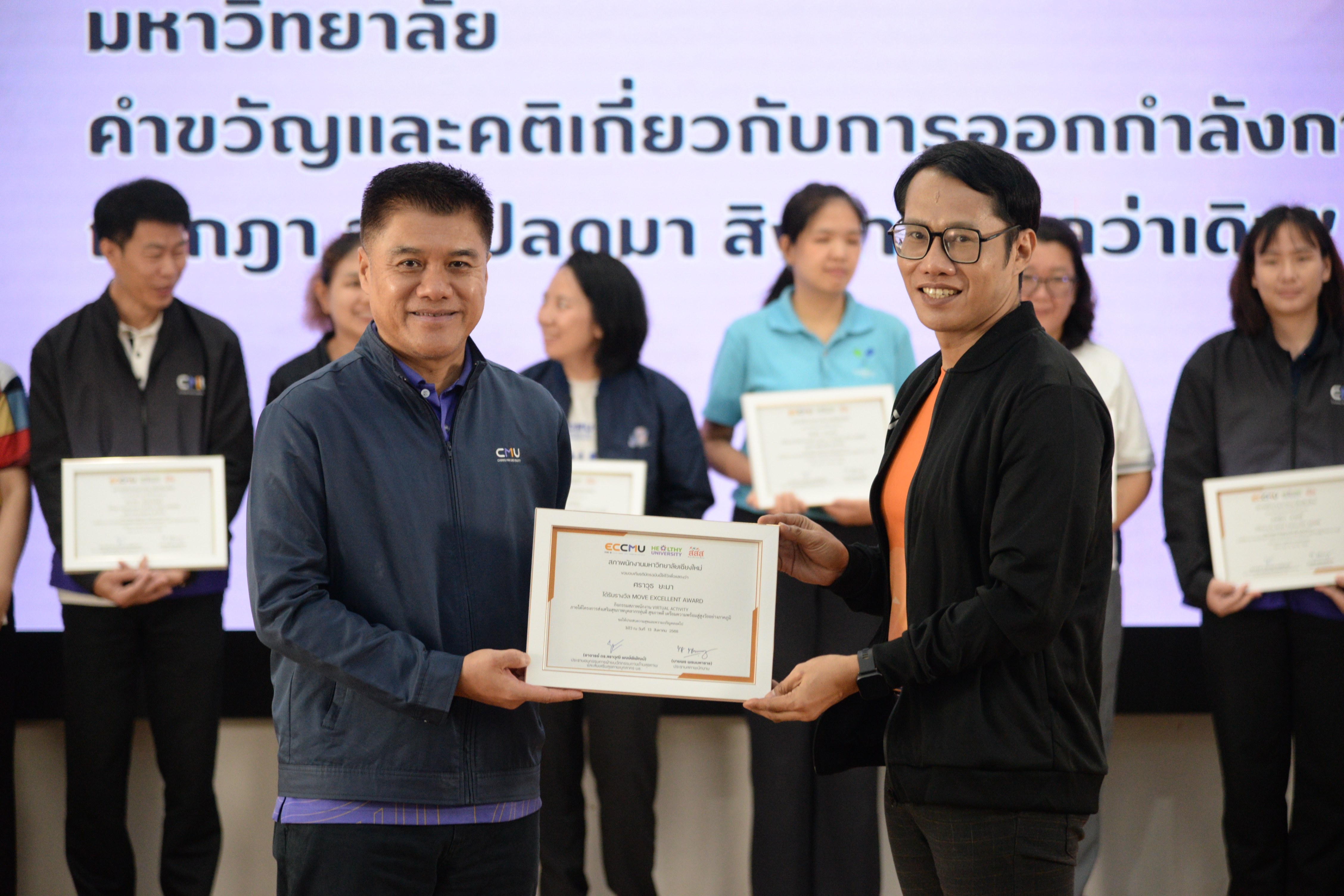 - การมอบรางวัลเกียรติบัตรบุคลากรสุขภาพดีต้นแบบ รางวัล MOVE Excellent Award ผู้ที่มีก้าวเดินสูงสุด 5 อันดับแรก