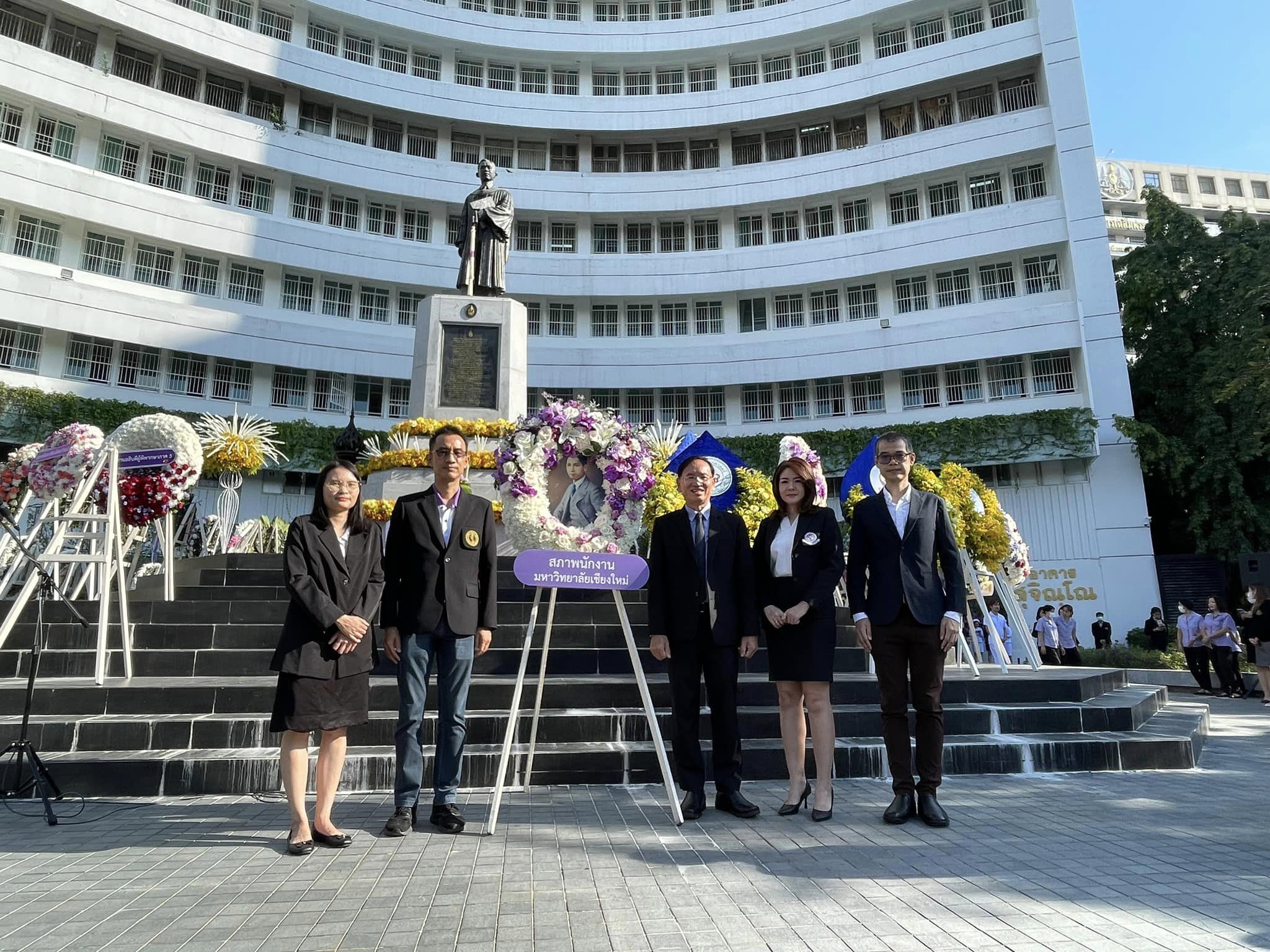 นายพร พรมมหาราช ประธานสภาพนักงานและกรรมการสภาพนักงานมหาวิทยาลัยเชียงใหม่ ร่วมพิธีวางพวงมาลาถวายราชสักการะพระราชานุสาวรีย์ สมเด็จพระมหิตลาธิเบศร อดุลยเดชวิกรม พระบรมราชชนกในรัชกาลที่ 9 ณ ลานพระราชานุสาวรีย์ สมเด็จพระมหิตลาธิเบศร อดุลยเดชวิกรม พระบรมราชชนก เนื่องใน “วันมหิดล” ประจำปี 2566 ณ ลานพระราชานุสาวรีย์ สมเด็จพระมหิตลาธิเบศร อดุลยเดชวิกรม พระบรมราชชนกคณะแพทยศาสตร์ ในวันอาทิตย์ที่ 24 กันยายน 2566 เวลา 8.45 น.