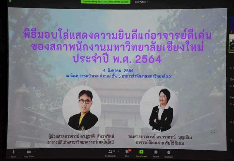 สภาพนักงานมหาวิทยาลัยเชียงใหม่ ขอแสดงความยินดีแก่อาจารย์ดีเด่นของสภาพนักงานมหาวิทยาลัยเชียงใหม่ ประจำปี พ.ศ. 2564