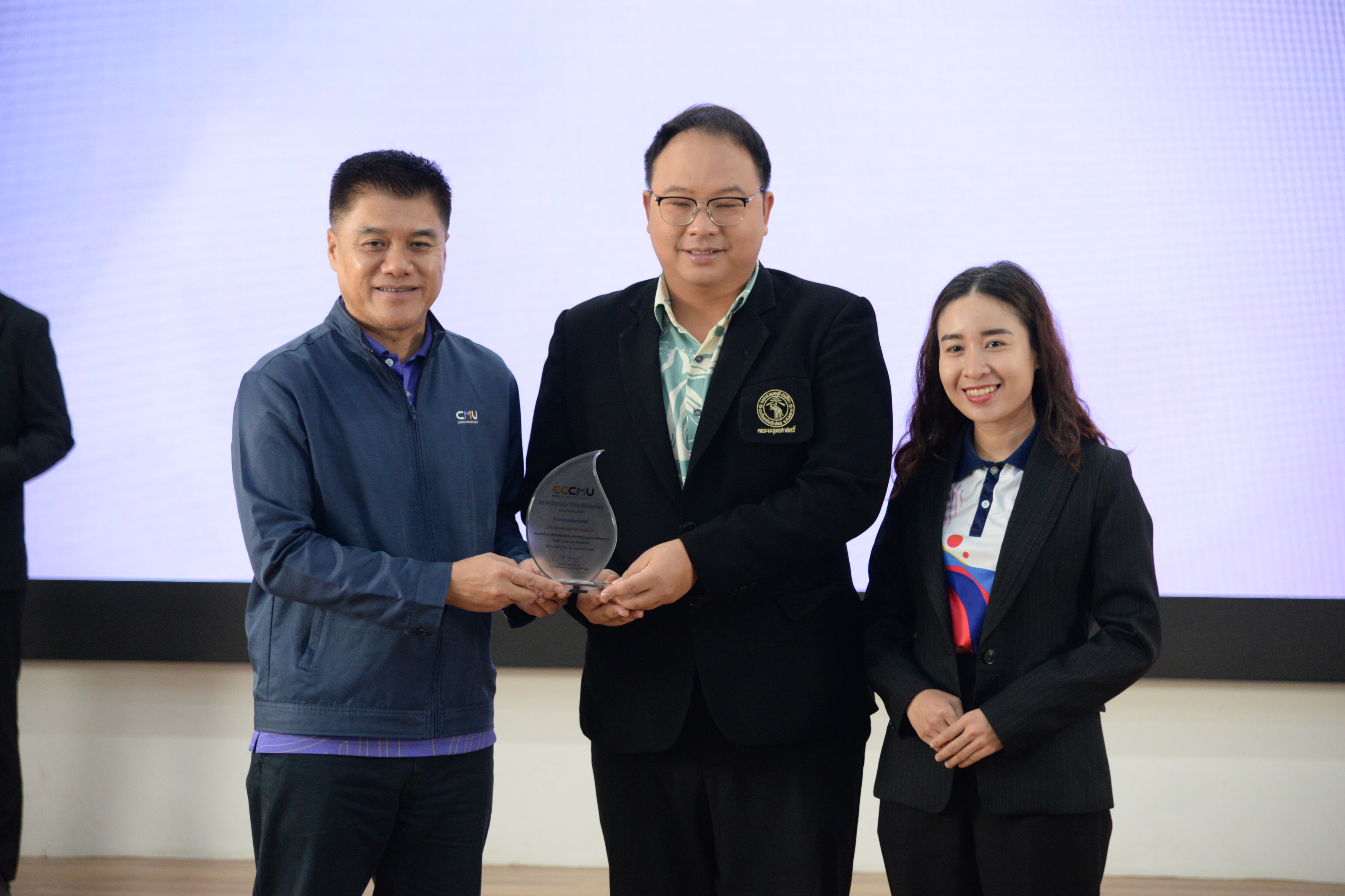 มอบโล่รางวัลส่วนงานส่งเสริมเมนูอาหารสุขภาพกิจกรรมการประกวดเมนูอาหารสุขภาพของส่วนงานมหาวิทยาลัยเชียงใหม่ในหัวข้อ High Taste Low Glycemic ภายใต้โครงการส่งเสริมสุขภาพบุคลากรหุ่นดี สุขภาพดี เตรียมความพร้อมสู่สูงวัยอย่างภาคภูมิ ในกิจกรรมสภาพนักงานพบปะบุคลากรมหาวิทยาลัยเชียงใหม่ประจำปี พ.ศ. 2568 วันพุธที่ 27 สิงหาคม 2568 ณ ห้อง Living Space ชั้น 3 สำนักหอสมุด มหาวิทยาลัยเชียงใหม่