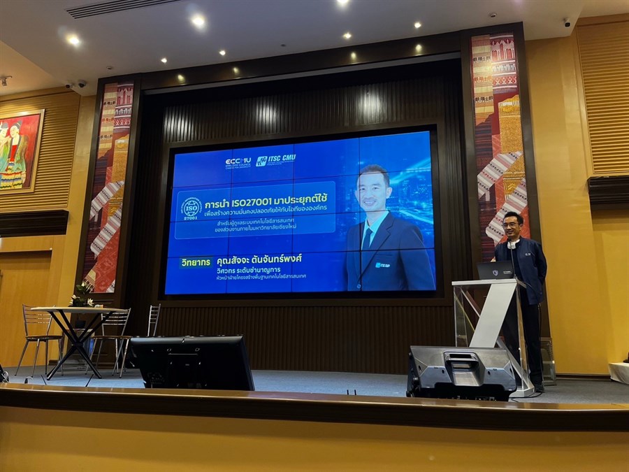 สำนักบริการเทคโนโลยีสารสนเทศ ร่วมกับ เครือข่ายผู้พัฒนางานระบบเทคโนโลยีสารสนเทศ (ไอที) สภาพนักงาน มหาวิทยาลัยเชียงใหม่ จัดกิจกรรมโครงการแบ่งปันความรู้ในหัวข้อ “การนำ ISO27001 มาประยุกต์ใช้ เพื่อสร้างความมั่นคงปลอดภัยให้กับไอทีขององค์กร” เพื่อเสริมสร้างทักษะความรู้ ให้กับบุคลากรผู้ดูแลระบบและผู้พัฒนางานระบบเทคโนโลยีสารสนเทศของหน่วยงานภายในมหาวิทยาลัย และแบ่งปันประสบการณ์ รวมไปถึงประโยชน์และแนวปฏิบัติในมาตรฐานของระบบการจัดการรักษาความมั่นคงปลอดภัยสารสนเทศ ซึ่งจะช่วยเพิ่มความแข็งแกร่งให้กับระบบไอทีของหน่วยงาน ลดความเสี่ยง และปกป้องข้อมูลจากภัยคุกคาม ให้หน่วยงานภายในมหาวิทยาลัยสามารถดำเนินกิจกรรมได้อย่างต่อเนื่อง โดยคุณสัจจะ ตันจันทร์พงศ์ หัวหน้าฝ่ายโครงสร้างพื้นฐานเทคโนโลยีสารสนเทศ สำนักฯ วิทยากรผู้เชี่ยวชาญและมีประสบการณ์ในการนำ ISO27001 มาประยุกต์ใช้ในการทำงาน กิจกรรมจัดขึ้นเมื่อวันที่ 29 มีนาคม 2567 ณ ห้องประชุม 201 ชั้น 2 สำนักบริการเทคโนโลยีสารสนเทศ